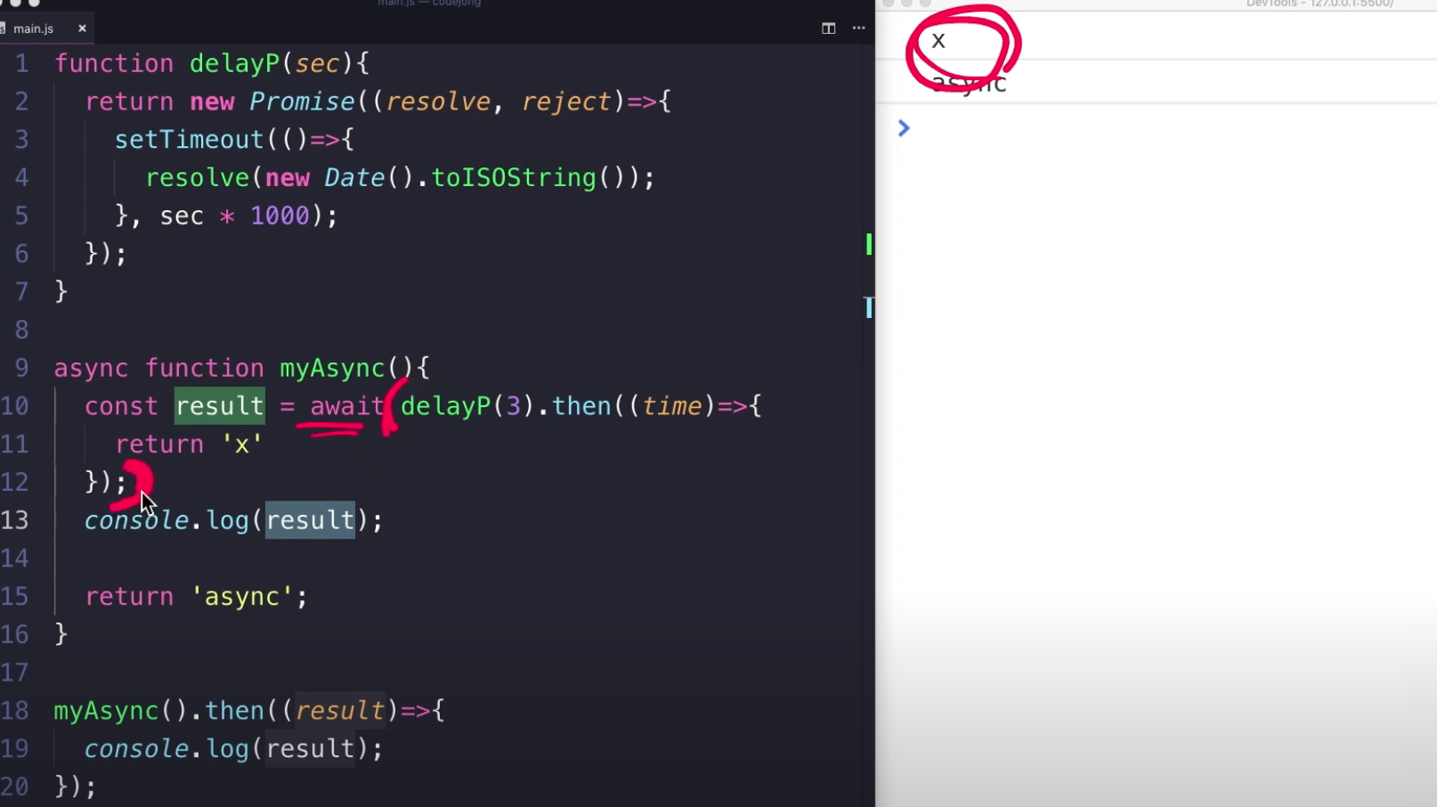 then에서 받은 결과값을 마치 일반함수 리턴값을 받듯이 쓸수 있게 된다.
