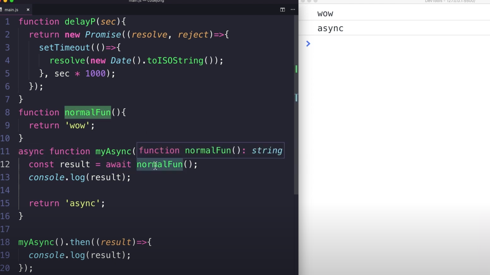 awiat은 promise가 resolve 되어 결과값이 오길 기다린다.