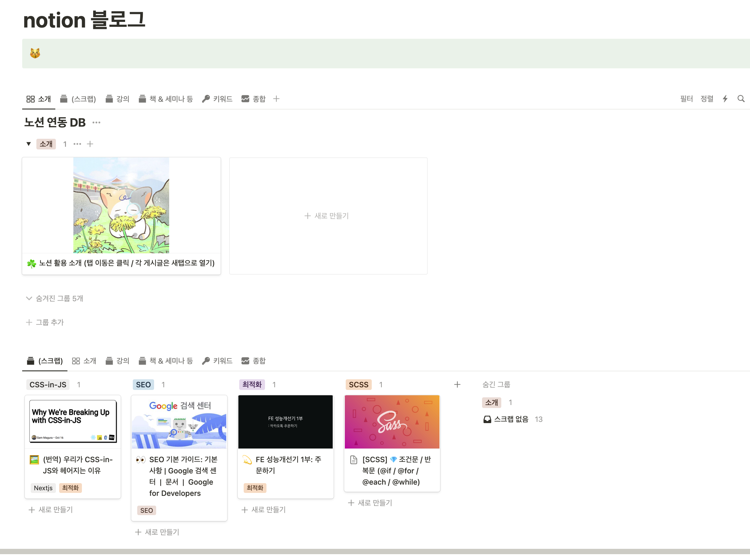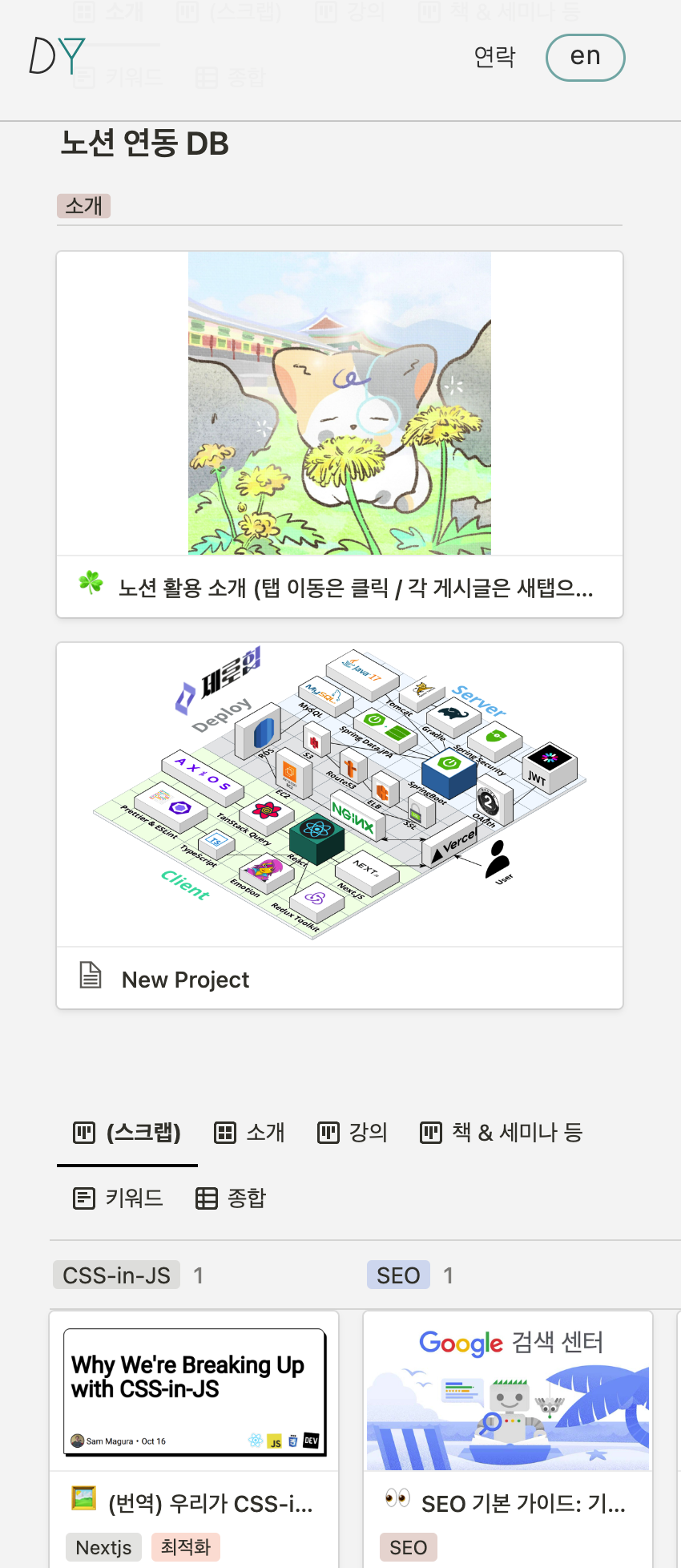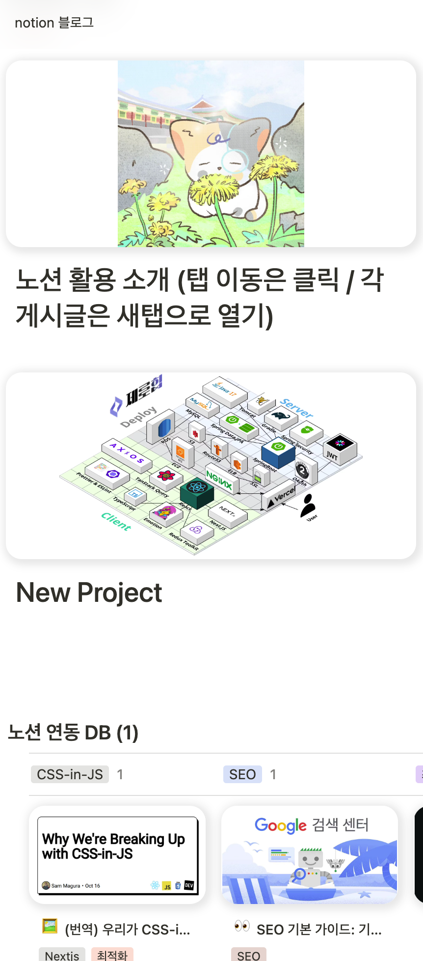 - 직접 코드를 짜가며 삽질해가면서 Notion API와 어느정도 친해지고 싶다 (+ 멀티탭 기능이 소중하다) -> react-notion-x
