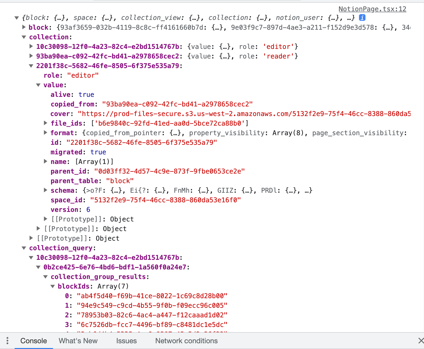 참고로 NotionAPI는 내 기준 친절하게 데이터를 돌려주지 않는다. 보통 때처럼 바로 화면에 렌더링할 수 있는 데이터가 아니다. 예를 들면 아래와 같은 형태로 돌아온다.
